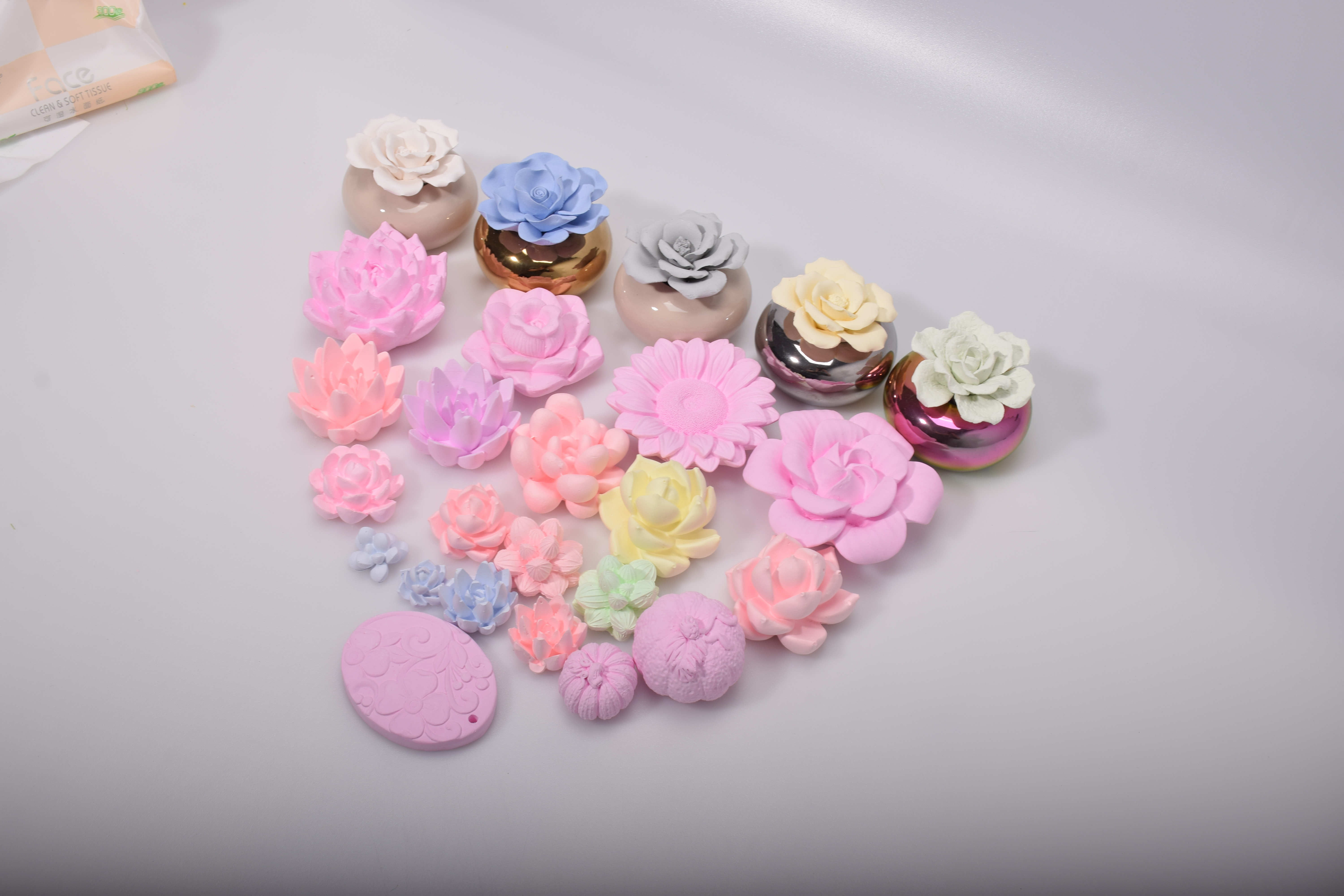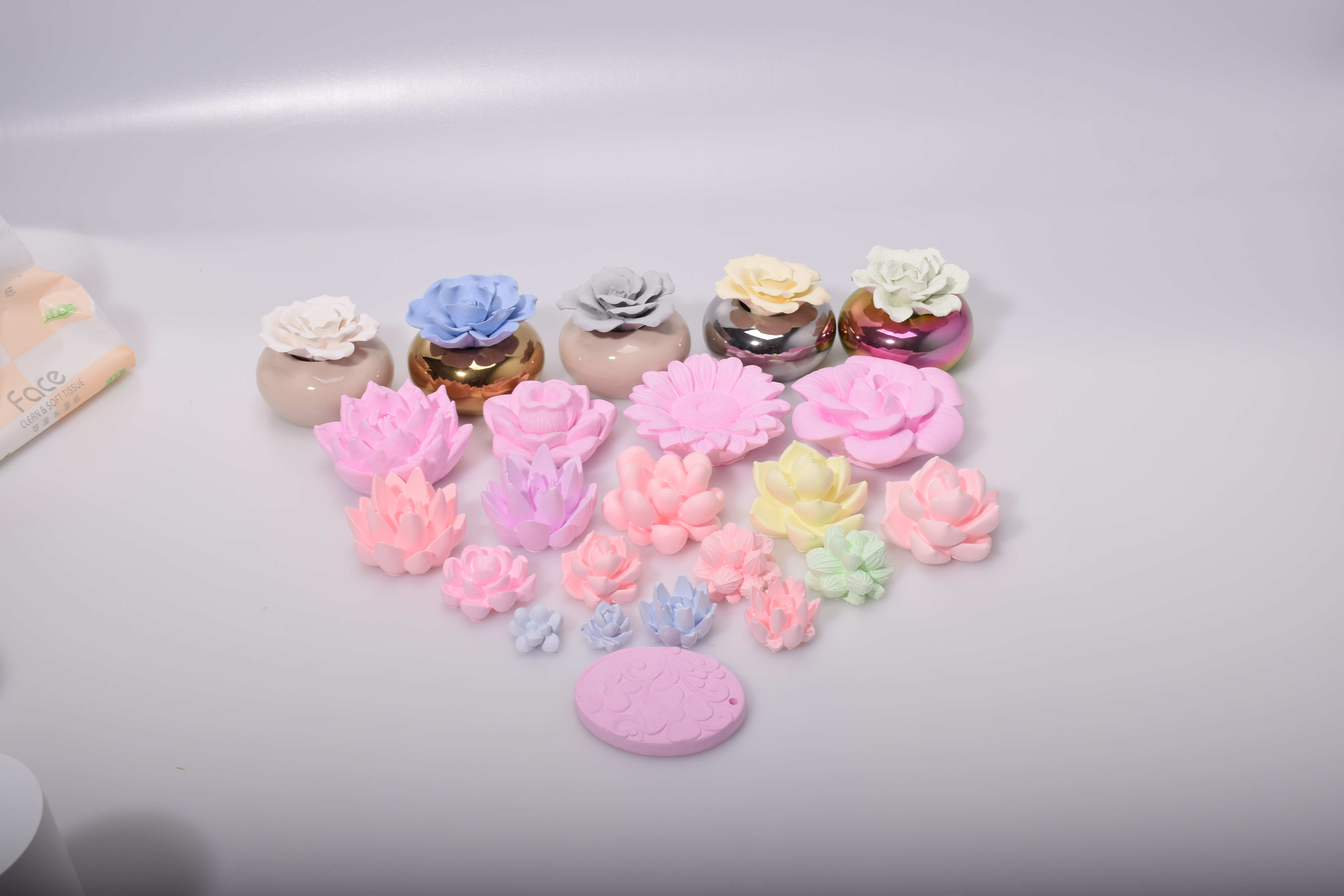 Chic Roses flower with a porous and unglazed center absorbs essential oils and gently scents spaces within a 160ft radius without any heat or electricity. Simply apply 5-6 drops of your favorite essential oil or mix directly to the flowers to enjoy the benefits of your passive lotus diffuser.(Product does not contain essential oils)