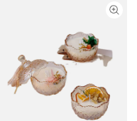 The container is made of engraved glass, which is transparent and has intricate and elaborate engravings on its surface. The lines are smooth and have a sense of layering. Under the refraction of light, it presents a retro and luxurious visual effect. The amber-colored glass adds a warm texture to the whole, as if the elegance of the old times is sealed within. Placed on the table, it instantly becomes an artistic piece in the space, suitable for various home styles such as retro, French, and light luxury.