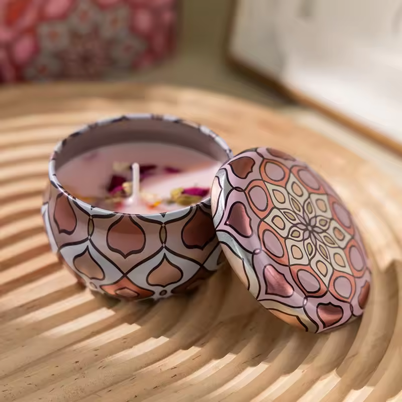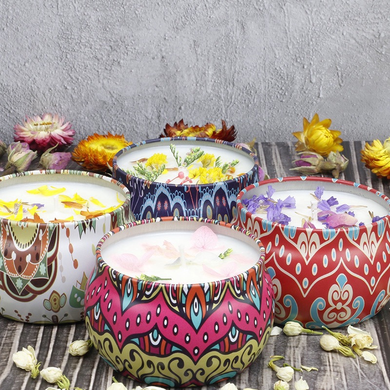 PORTABLE TRAVEL TIN CANDLES - Candle tins with lids are made of patterned thick metal, travel-size, handy to carry. After the scented candles is used up, these pretty candle tins can be used as storage containers.
